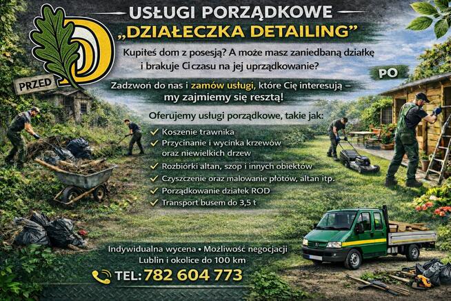 Usługi Porządkowe „DZIAŁECZKA DETAILING” Kupiłeś dom z posesją? A może masz zaniedbaną działkę i brakuje Ci ...